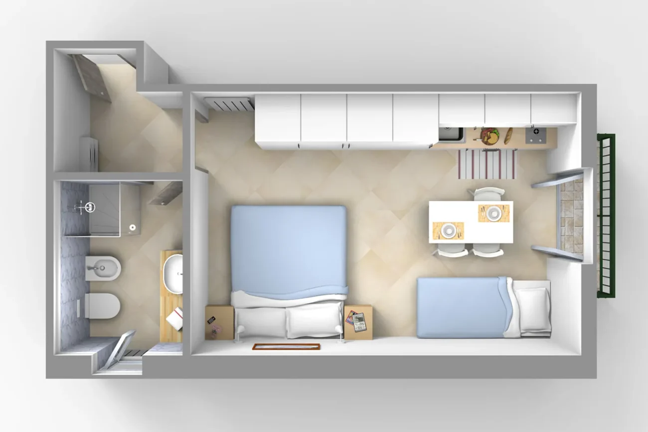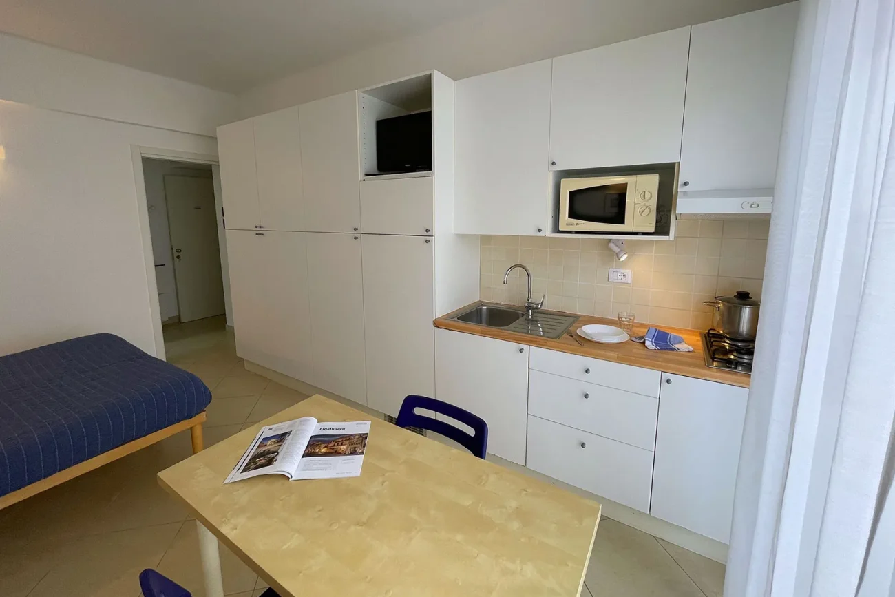 Monolocale G — Letto e angolo cottura | Residence Glicini, Finale Ligure