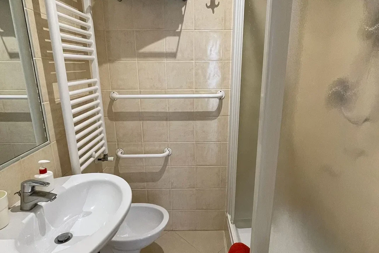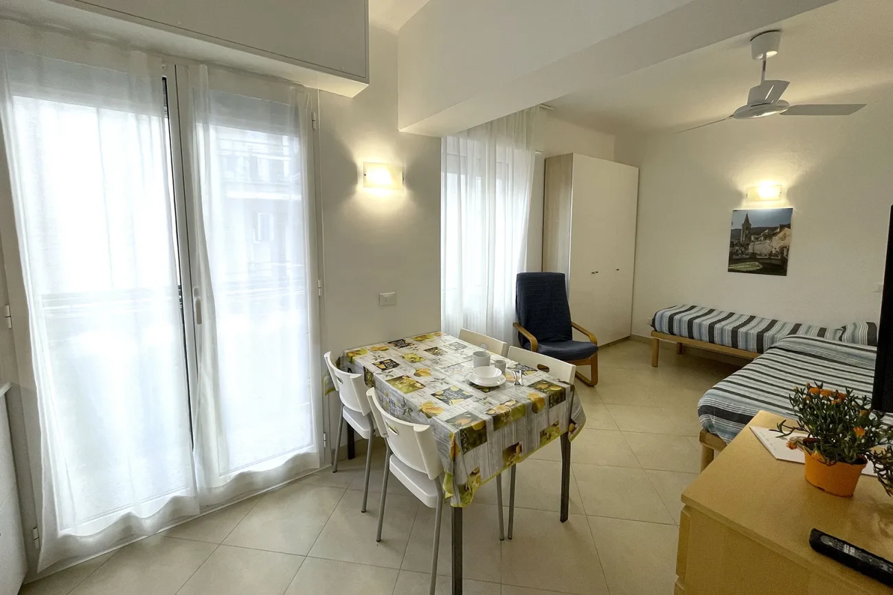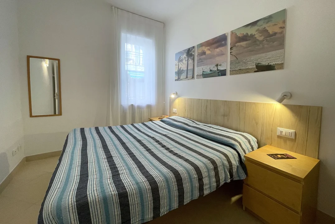 I Bilocali Tipo C del Residence Glicini offrono 35 m² ben distribuiti: camera da letto indipendente, soggiorno con letto doppio (o due singoli), cucina completa e bagno privato.