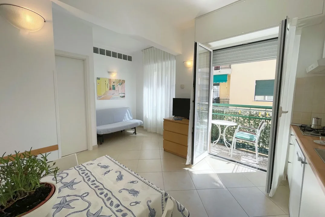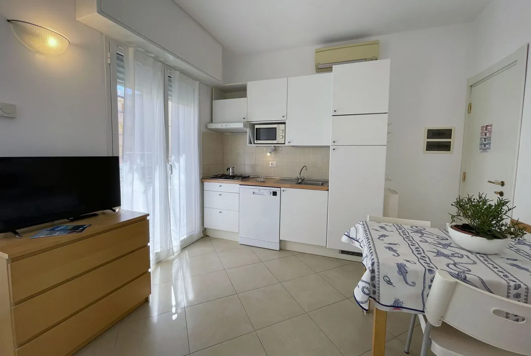 La cucina completa (con lavastoviglie) e l’aria condizionata rendono il soggiorno pratico in ogni stagione, a pochi minuti dal mare di Finale Ligure.
