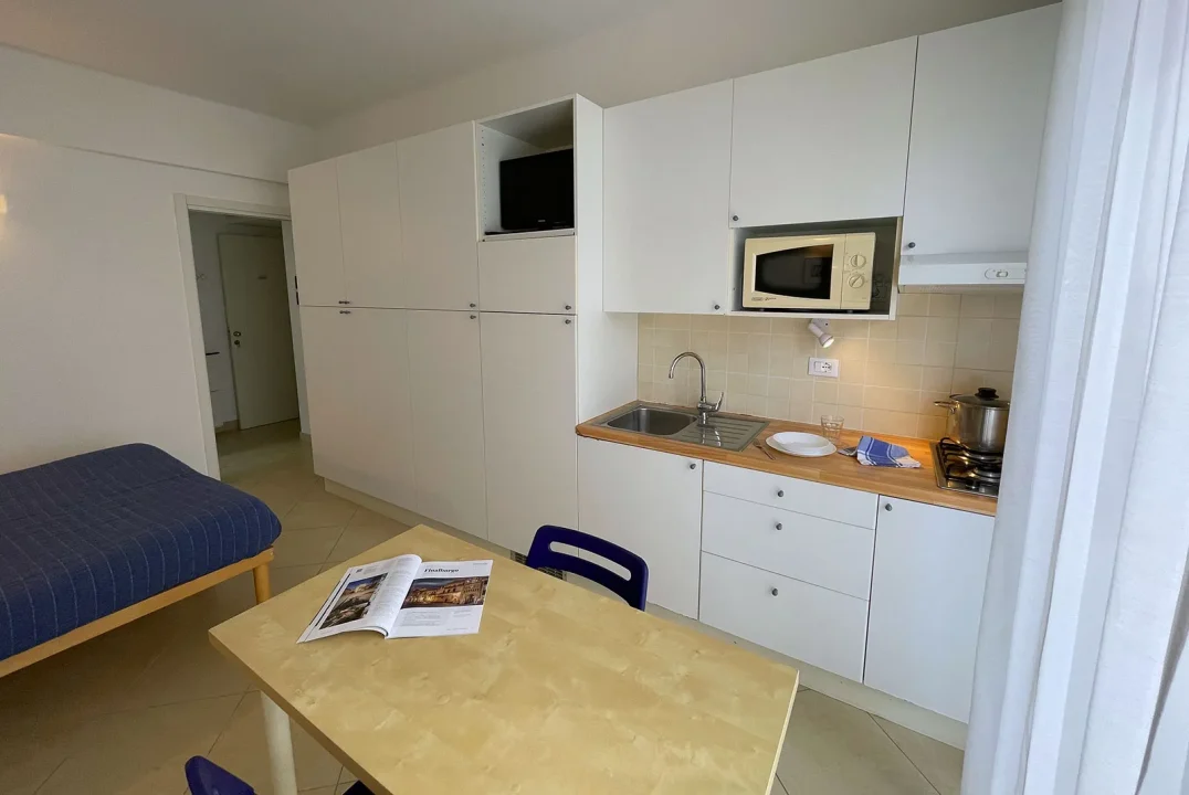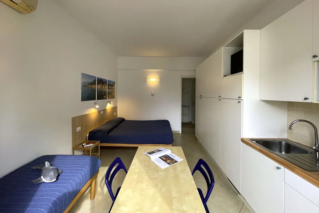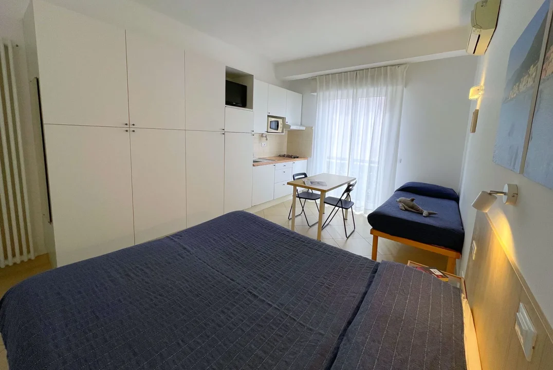 Monolocale G — Letto e angolo cottura | Residence Glicini, Finale Ligure